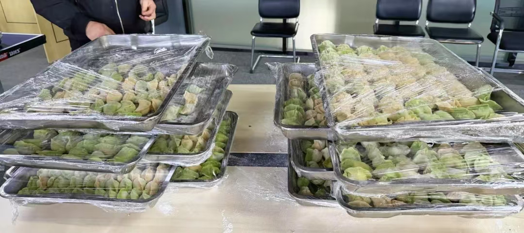 員工活動(dòng)室變成了溫馨的家庭廚房,大家紛紛“搶占”自己的一席之地。大家熱情高漲,紛紛自行組團(tuán)參與包餃子比拼,有的負(fù)責(zé)搟面皮、有的負(fù)責(zé)包餃子、還有的負(fù)責(zé)擺盤計(jì)數(shù),現(xiàn)場(chǎng)充滿了歡聲笑語(yǔ)。大家在歡樂溫馨的節(jié)日氛圍中盡情展示著每個(gè)人的當(dāng)家廚藝,最美好的祝福都隨著大家的巧手“包進(jìn)”了小小的餃子里。